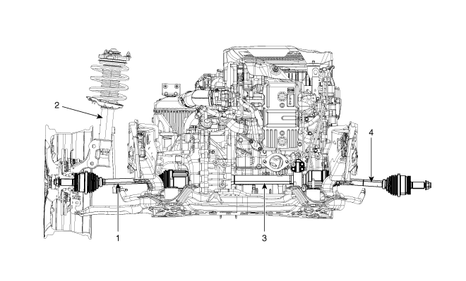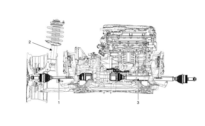 | 1. Arbre de transmission (G) 2. Ensemble de la jambe de force avant |