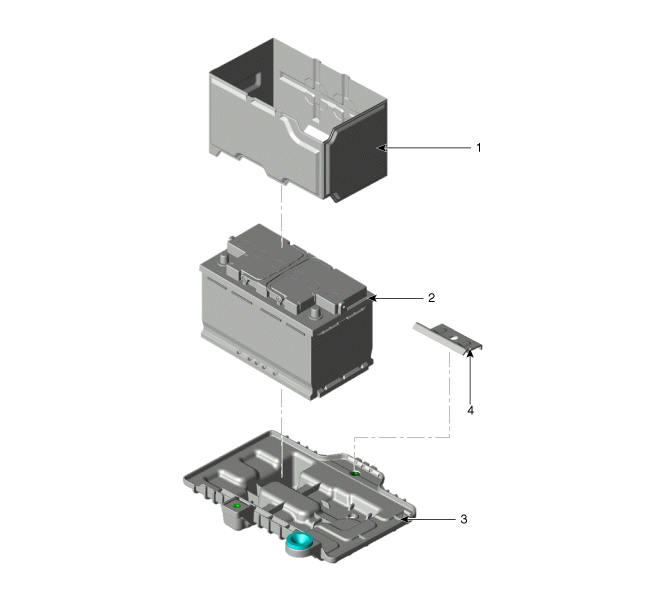 3. Bac de la batterie 4. Support de fixation de la batterie |
