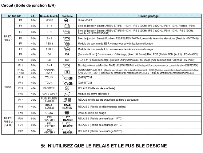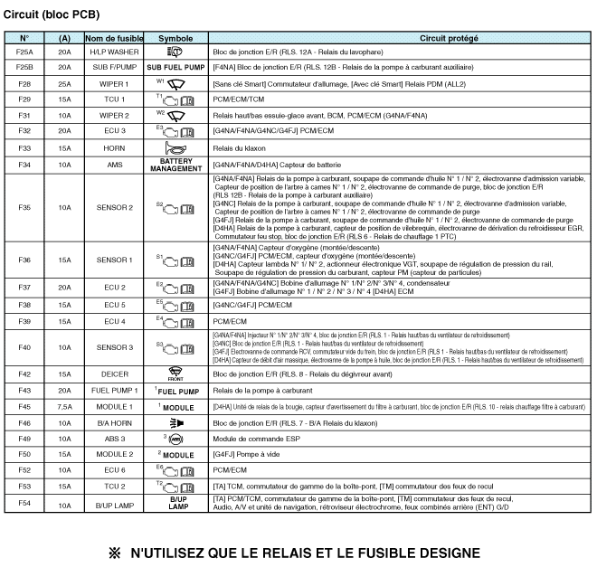 Vérifiez que chaque circuit de fusible a une capacité de fusible exacte.