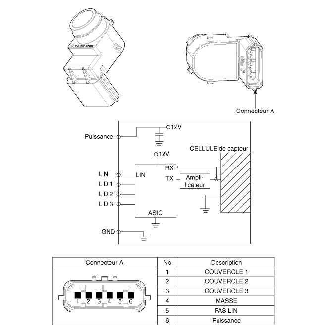 Débranchez le connecteur (B) du capteur d'aide au stationnement (A).