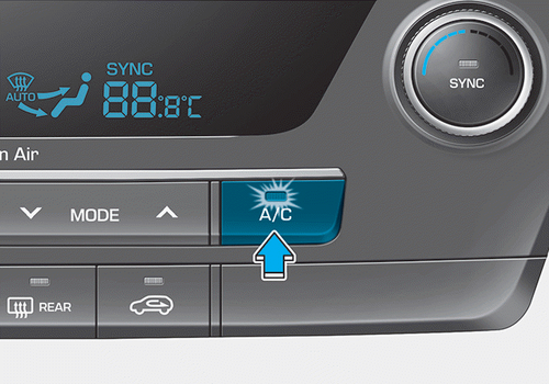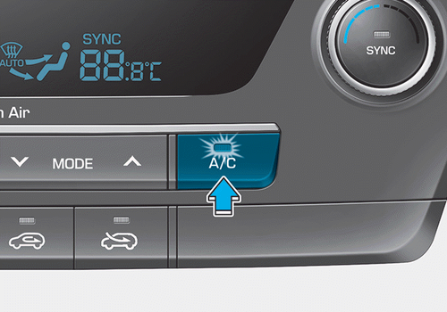 Appuyez sur le bouton A/C pour activer le système de climatisation (le témoin s'allume).