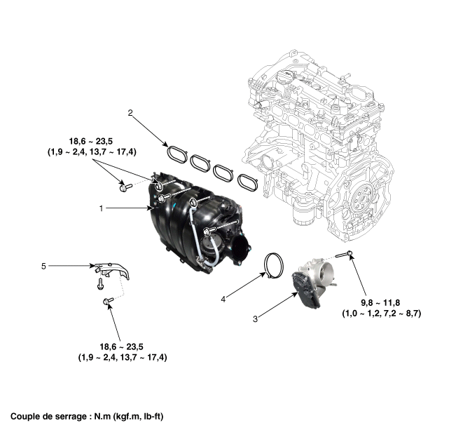 3. Corps du papillon électronique 4. Montant du collecteur d’admission |