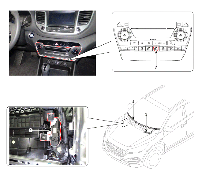 3. Connecteur du dégivreur 4. Dégivreur de pare-brise |