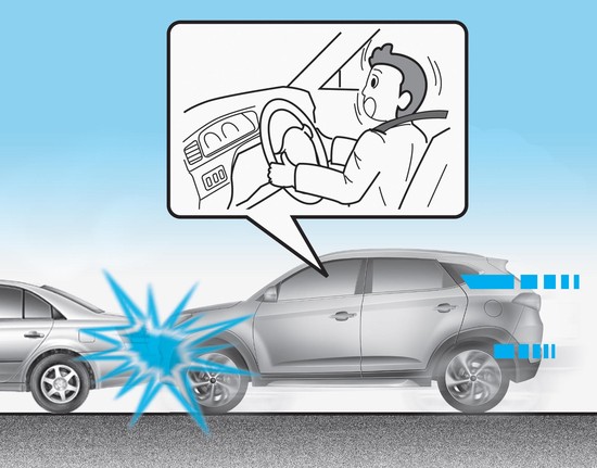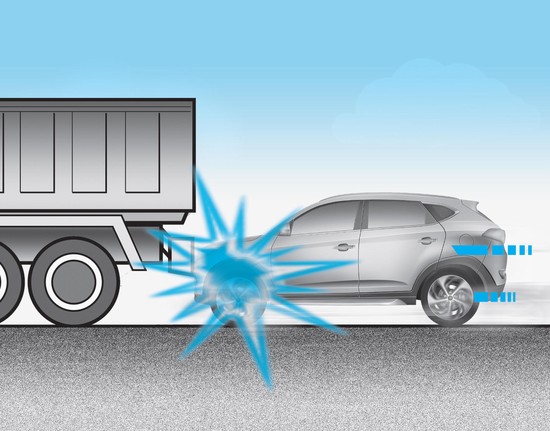 Juste avant l'impact, les conducteurs ont tendance à freiner brusquement. Ce type de freinage abaisse la partie avant du véhicule, qui peut s'encastrer sous un autre véhicule ayant une garde au sol plus élevée. Les airbags peuvent ne pas se déployer dans ce cas, car la force de décélération détectée par les capteurs peut être fortement réduite par ce type d'encastrement.