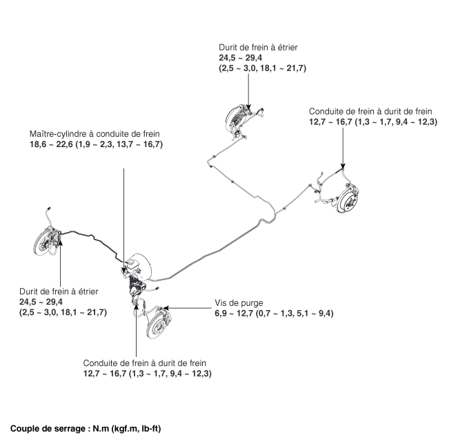 Vérifiez que les tuyaux de frein ne sont pas fissurées, serties ou corrodées.