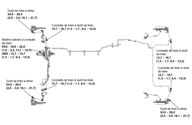 Vérifier que les écrous évasés de la conduite de freinage ne sont pas