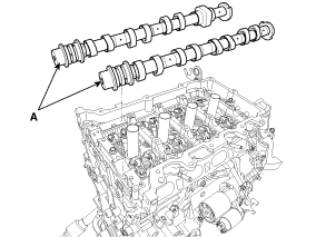 Installez le chapeau (A) de palier de l'arbre à cames.