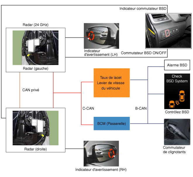 BSD et active le témoin d'avertissement BSD pour le conducteur.