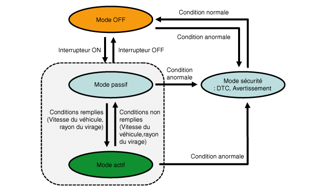 Si les conditions d'activation (vitesse et rayon de courbure) sont remplies
