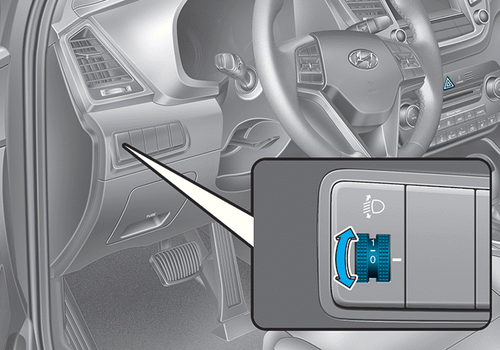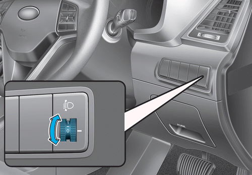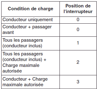 Tournez le commutateur de mise à niveau des phares pour régler la hauteur des phares en fonction du nombre de passagers et de la charge du compartiment à bagages.
