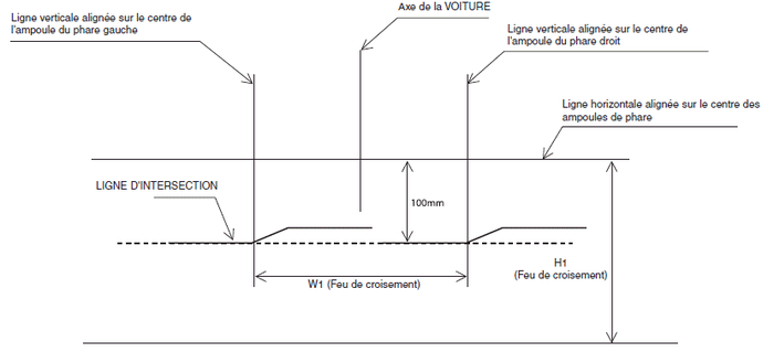 3. Lorsque vous orientez les feux de croisement, réglez l'orientation verticale après avoir réglé l'orientation horizontale.