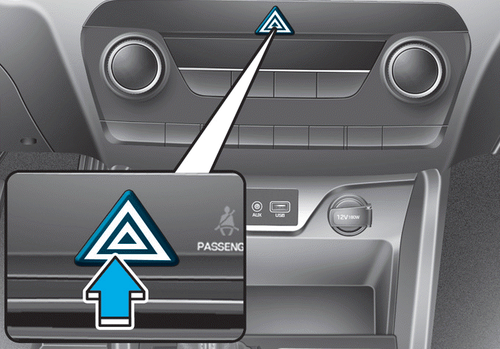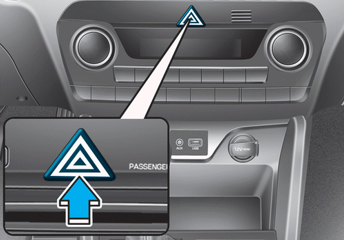 Vous devez les utiliser lorsque vous procédez à des réparations d'urgence ou lorsque votre véhicule est arrêté sur le bord d'une route. Pour activer ou désactiver les feux de détresse, appuyez sur le bouton correspondant, quelle que soit la position du bouton de démarrage/ d'arrêt du moteur. Le bouton se trouve sur la console centrale. Lorsque les feux de détresse sont activés, tous les clignotants se déclenchent simultanément.
