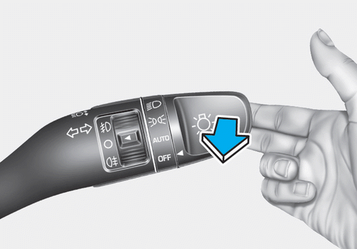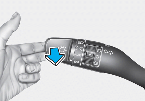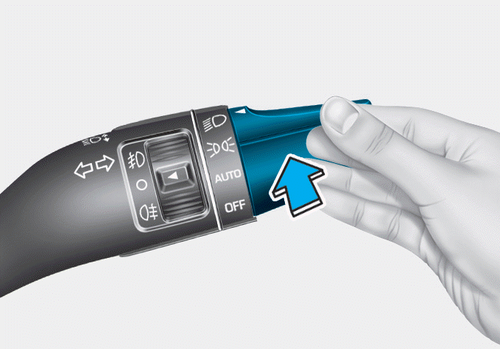 Pour allumer les feux de route, poussez le levier de commande. Le levier revient ensuite à sa position d'origine.