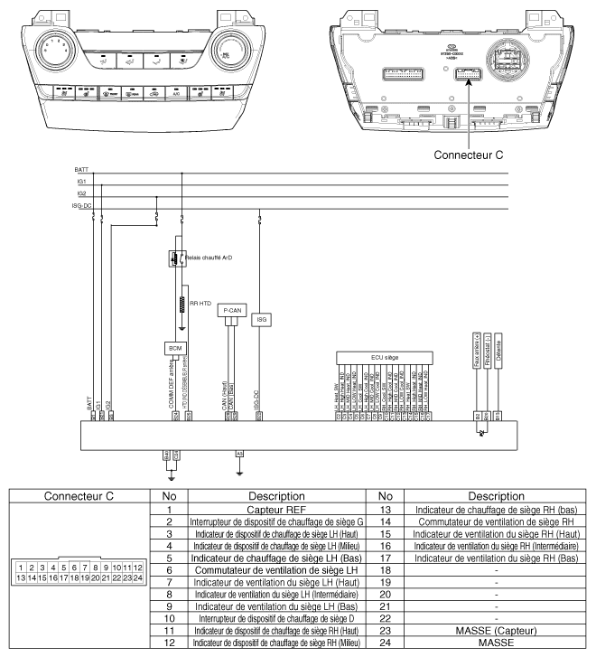 | [Commutateur du chauffage de siège avant (DATC)] |