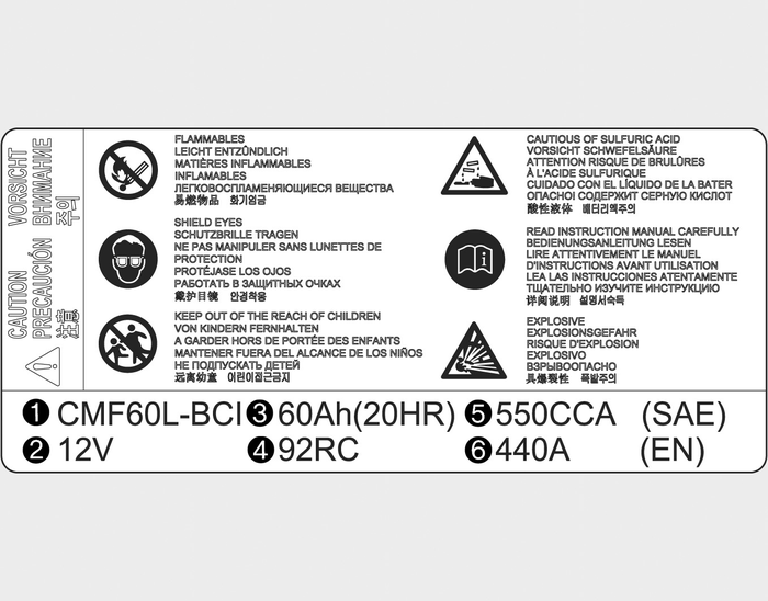 1. CMF60L-BCI : nom du modèle HYUNDAI de la batterie