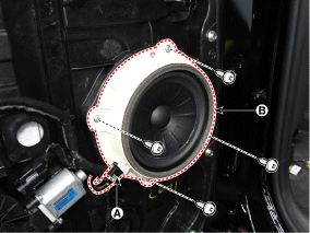 Déposez le haut-parleur de porte avant (B) en déconnectant le connecteur