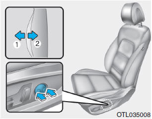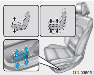 1. Poussez la partie avant du commutateur de commande vers le haut pour rehausser l'avant de l'assise ou vers le bas pour l'abaisser.
