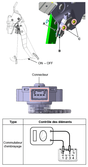 Si la pédale d'embrayage est enfoncée, (A) actionnez le commutateur