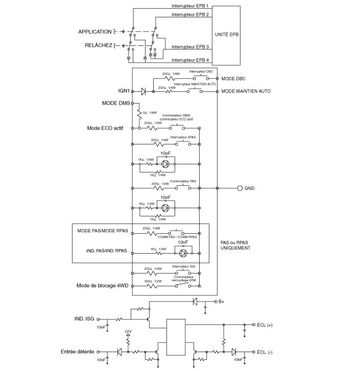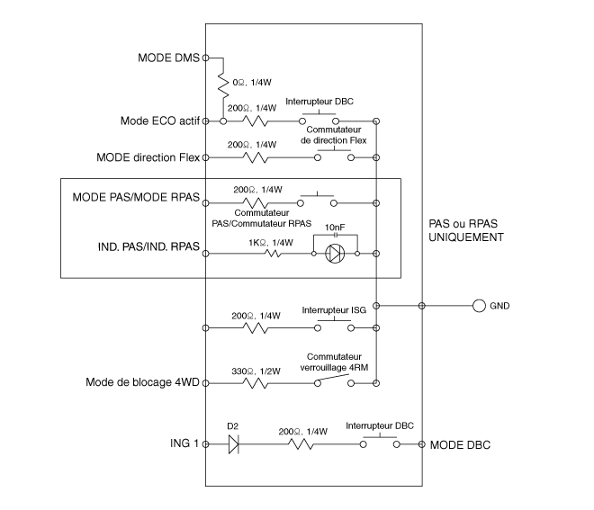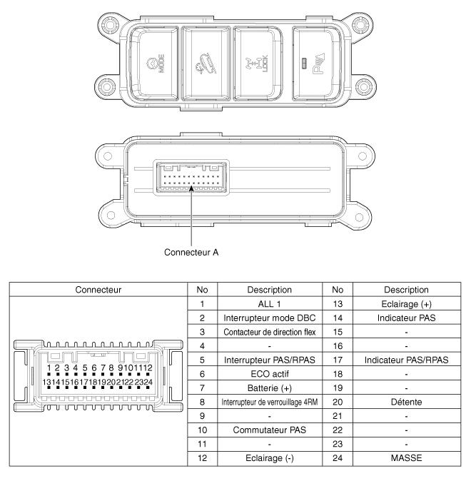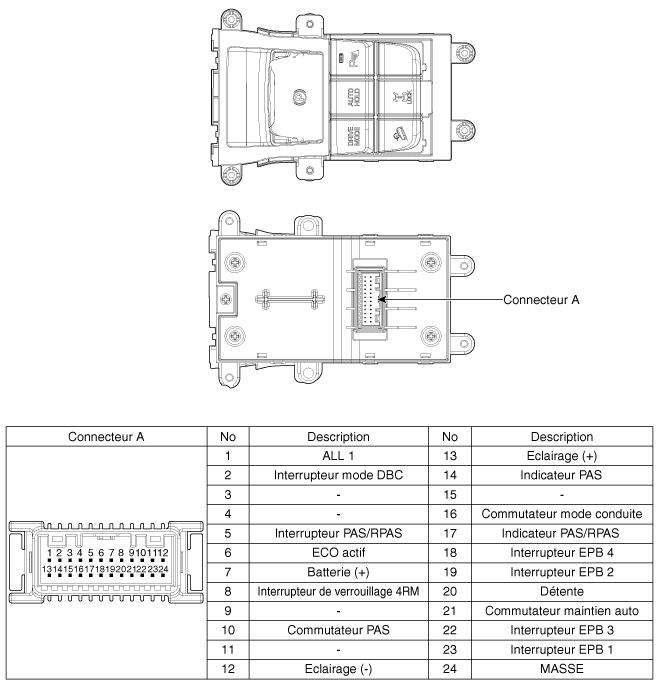 Retirez le commutateur d'aide au stationnement arrière (A) du couvercle