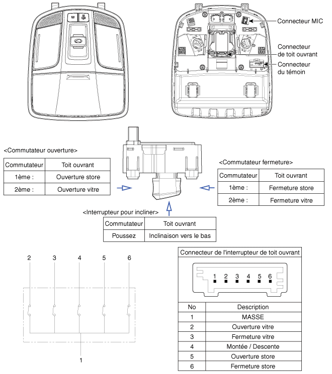 pas aux spécifications, remplacez l'interrupteur du toit panoramique.