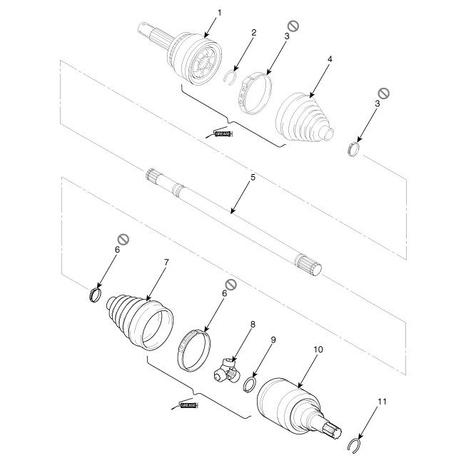 du joint birfield 2. Circlip BJ 3: Bande du pare-poussière du JB 4. Soufflet BJ |