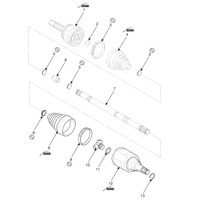 TJ 10. Croisillon 11. Anneau de retenue 12. Pare-poussière du TJ |