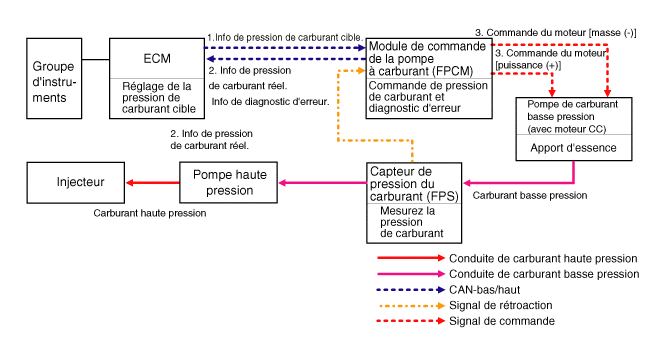 L'ECM fournit l'information de pression de carburant cible à FPCM via
