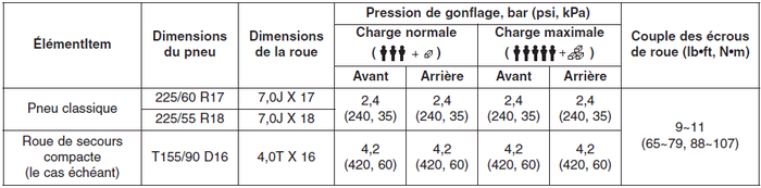 Capacités de charge et de vitesse des pneus (Pour l'europe)Poulie d'amortisseur du vilebrequin