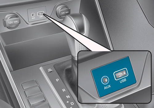 Vous pouvez utiliser la prise auxiliaire pour connecter des appareils audio et la prise USB pour brancher une clé USB ou un iPod®.