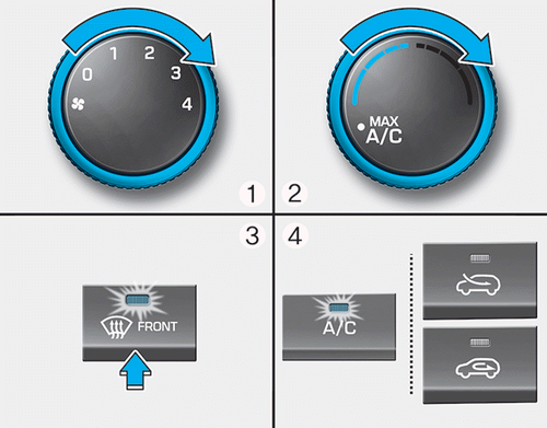 4. L'air extérieur (frais) et la climatisation (le cas échéant) seront sélectionnés automatiquement.