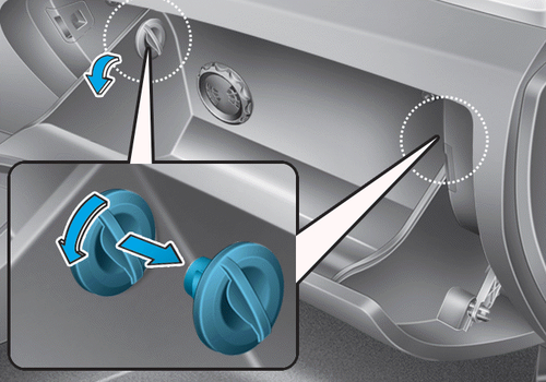 1.Ouvrez la boîte à gants et retirez les deux butées latérales.
