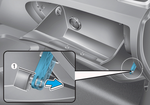 2.Retirez le panneau de la boîte à gants et la sangle de soutien (1).