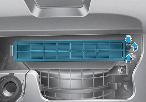 3.Retirez le carter du filtre à air de climatisation tout en appuyant sur le verrou situé sur la partie droite du cache.