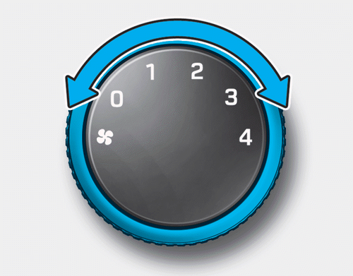 Le bouton de régulation de la vitesse du ventilateur permet de contrôler la vitesse de l’air provenant du système de ventilation. Pour modifier la vitesse de ventilation, tournez le bouton vers la droite pour l’augmenter et vers la gauche pour la baisser.