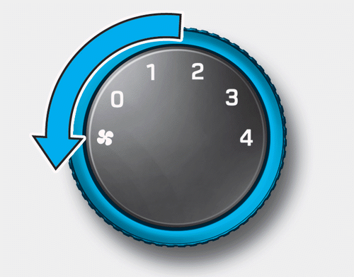 Pour éteindre les souffleries, tournez la molette de réglage de la vitesse du ventilateur sur la position " 0 ".