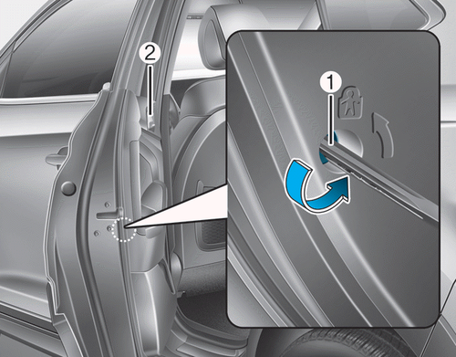 La sécurité enfant a pour but d'éviter que les enfants assis à l'arrière n'ouvrent accidentellement les portes. Elle doit être utilisée dès que des enfants sont présents dans le véhicule et est située au bord de chaque porte arrière. Lorsque la sécurité enfant est en position de verrouillage (1), la porte arrière ne s'ouvre pas, même si la poignée intérieure (2) est actionnée.