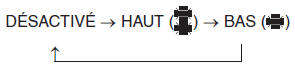À chaque fois que vous appuyez sur le commutateur, le réglage de la température du siège est modifié comme suit: