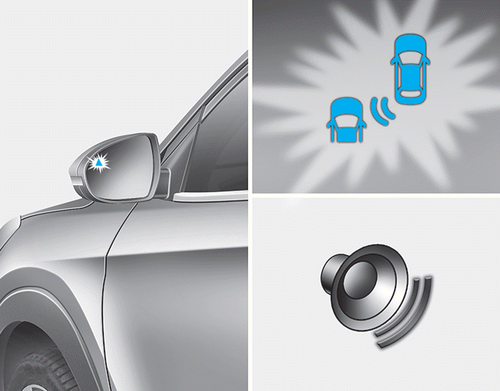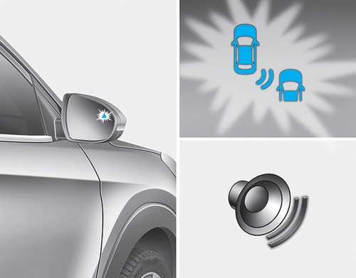Lorsque l'alerte de niveau 2 est activée, un témoin clignote sur le rétroviseur extérieur et une alarme sonore se déclenche.