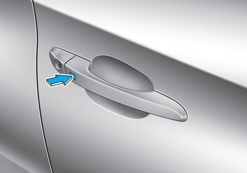 Le bouton de la poignée de porte ne fonctionne que lorsque la clé intelligente se trouve à moins de 0,7~1 m de la poignée extérieure.